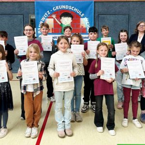 Am Donnerstag, den 15. Mai 2025 fand in der Aula der Pannwitz-Grundschule Lychen der Schulinterne Rezitatorenwettstreit statt. In jeder Klassenstufe gab es vorab einen Klassenwettbewerb. Nach dem Motto: „Bewege dich! Wage das Abenteuer! Und das Leben ist voller Reichtum!“ hat die Jury Textsicherheit, Sprechtempo, Aussprache, Betonung und Haltung (Mimik/Gestik) bewertet. Die 12 besten Gedichtsprecher, von Klasse 1 bis 6, sind…
